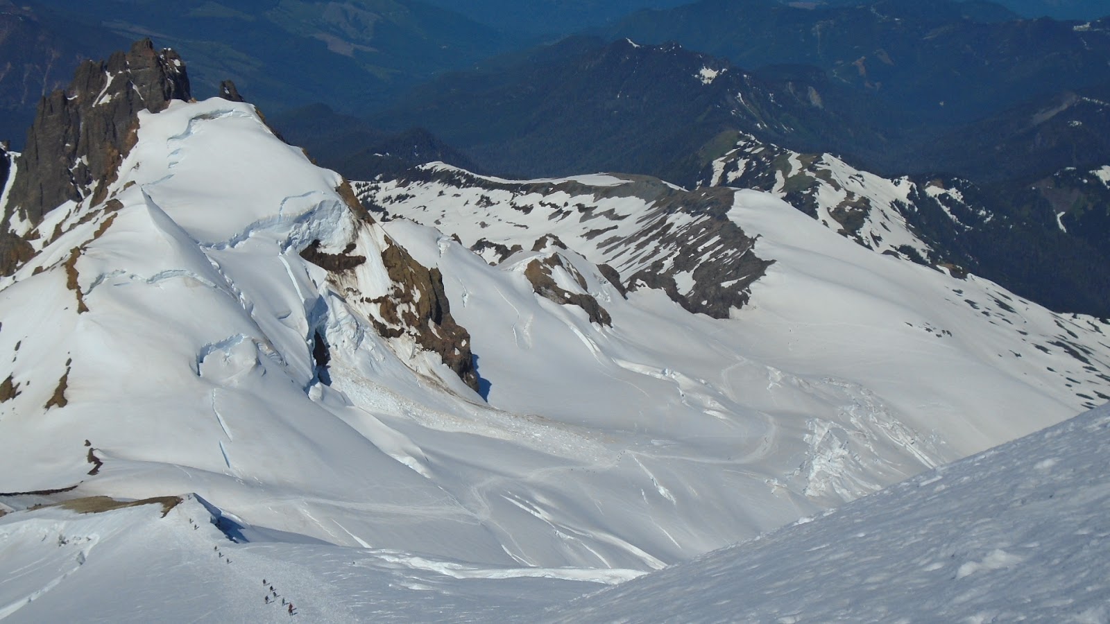 Beim Absteigen kamen uns drei groessere Gruppen entgegen die auf Grund des Wetters alle umkehrten, trotz meines positiven Zuredens, dass es wesentlich schlimmer sein koennte. So waren wir also an diesem Tag die letzten, die auf der Spitze von Washington standen.